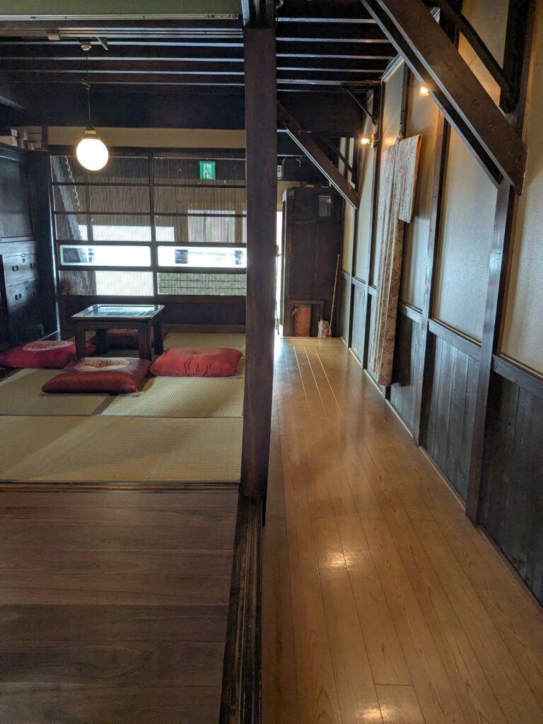 宿はなんとなくおしゃれな古民家長屋で、仏壇が置いてあったり変な着物、日本ではない東南アジアのどこかの絵などが飾ってあったりして外国人旅行者向けという感じだった。