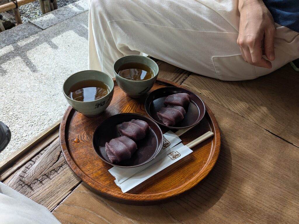 早朝から横を流れる川を見つつ、赤福とお茶をいただくのはなんとも贅沢な感じがしました。東京ではこういう感覚を味わうことは難しそうです。