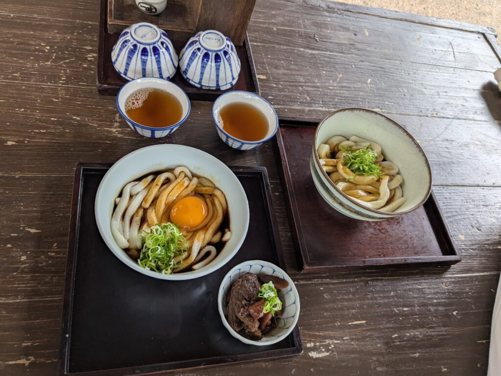『伊勢うどん』というのは噂を聞いていた。コシがなくてうどんじゃないという意見もあるようですが、何にしようかとメニューを見ていたら妻はなんだか上の空でだったけど月見うどんと土手煮にした。