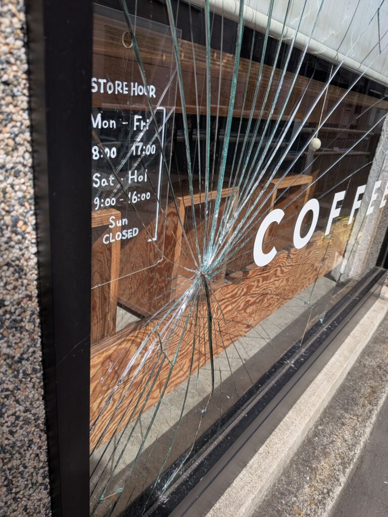 という話だった。なんだそれ。なんでガラス割られてんだ。