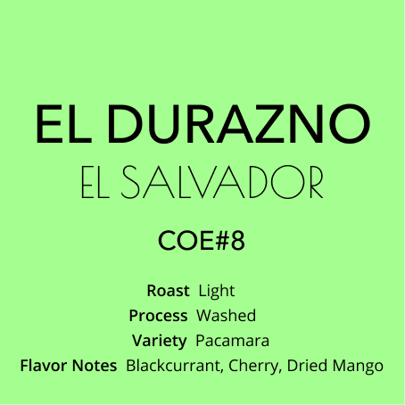After years of dedication and trial, El Durazno Farm earned its first Cup of Excellence award in El Salvador in 2025. This coffee beautifully expresses the vibrant, fruit-forward character unique to this exceptional terroir.