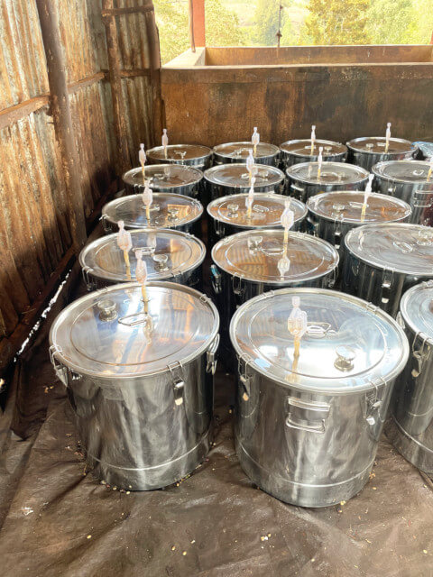 After carefully selecting only fully ripe coffee cherries, they are fermented for 10 days in sealed stainless-steel tanks filled with carbon dioxide — a fermentation process inspired by winemaking. Throughout the fermentation, temperature, pressure, and pH are precisely controlled while monitoring the development of aroma and color. The coffee is then slowly dried for 20–30 days on African beds, partially shaded under a canopy, to enhance its elegant fragrance and complex, refined fruit character.